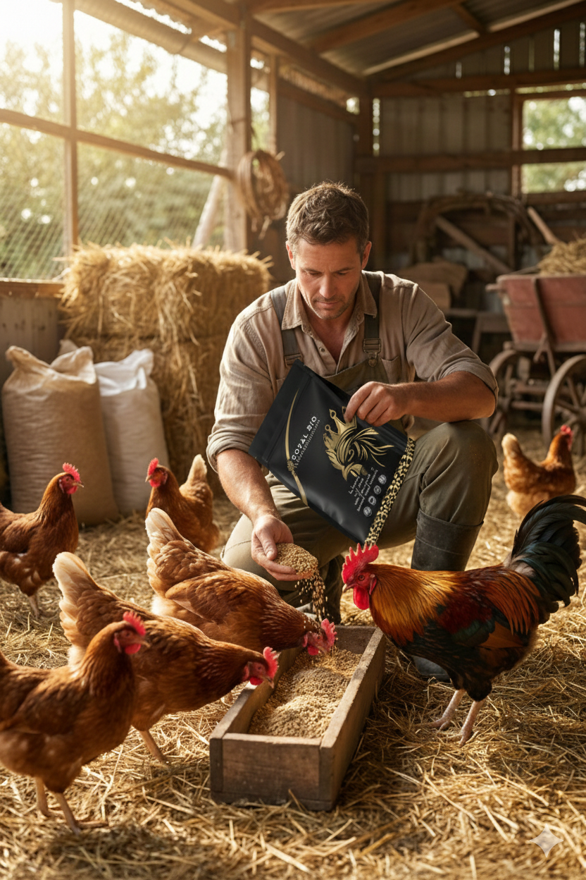 استعمال رويال بيو سهل وبسيط، ولا يحتاج لأي تجهيزات خاصة. يكفي الالتزام بالجرعة الموصى بها ضمن العلف اليومي.